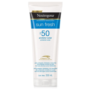 O Protetor Solar Corporal NEUTROGENA SUN FRESH® FPS 50, 200mL de textura ultraleve, antioxidante, que deixa a pele hidratada, fresca e sequinha. É de rápida absorção, fácil de aplicar e possui tecnologia HELIOPLEX® que proporciona alta proteção contra os raios UVA e UVB, além de prevenir o envelhecimento e as manchas causadas pelo sol e ser muito resistente à água e ao suor Benefícios e diferenciais Fórmula com textura ainda mais leve Nova tecnologia Helioplex XP Protege contra raios UVA, UVB e luz visível Antioxidante Pele protegida, hidratada e sequinha Invisível na pele Fórmula ultra leve como hidratante Mais agradável de usar Oil Free Resistente à água e ao suor Como usar Aplique abundantemente antes da exposição ao sol. É necessária a reaplicação do produto para manter sua efetividade. Reaplicar sempre, após sudorese intensa, nadar ou banhar-se, secar-se com toalha e durante a exposição ao sol. Para fechar, pressione o centro da tampa. Composição Aqua, Homosalate, Octocrylene, Butyl Methoxydibenzoylmethane, Ethylhexyl Salicylate, Methylene Bis-Benzotriazolyl Tetramethylbutylphenol, Styrene/Acrylates Copolymer, Glycerin, Caprylyl Methicone, Ethylhexyl Triazone, Aluminum Starch Octenylsuccinate, Bis-Ethylhexyloxyphenol Methoxyphenyl Triazine, Silica, Potassium Cetyl Phosphate, Phenoxyethanol, Triacontanyl PVP, Cetyl Alcohol, Glyceryl Stearate, Hydroxyacetophenone, Tocopheryl Acetate, Hydrolyzed Jojoba Esters, Dimethicone, PEG-75 Stearate, Parfum, Acrylates/C10-30 Alkyl Acrylate Crosspolymer, Acrylates/Dimethicone Copolymer, Ceteth-20, Steareth-20, Disodium EDTA, Jojoba Esters, Amyl Cinnamal, Benzyl Salicylate, Limonene Precauções Uso Externo. Evite contato com os olhos. Caso isso aconteça, enxágue-os com água em abundância. Descontinue o uso se surgirem irritações na pele. Se a quantidade aplicada não for adequada, o nível de proteção será significativamente reduzido. O produto ajuda a prevenir as queimaduras solares, mas não oferece nenhuma proteção contra a insolação. Evite exposição prolongada das crianças ao sol. Para crianças menores de 6 (seis) meses, consultar um médico. Conserve fora do alcance das crianças. Em contato com tecido, pode causar manchas.